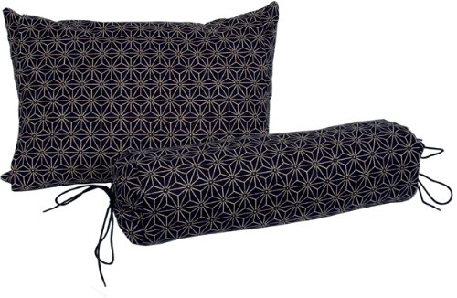 J-Life Buckwheat Hull Neck Roll Pillow - Japanese Soba Gara Makura - Cylindrical 3.5" x 14" - Asa No Ha Navy Pattern 1