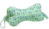 With the goal of ideal alignment for the neck and shoulders, the DogBones NeckBones pillow features a cradling shape and soft, springy interior. Sewn to allow room for your neck while supporting your head, the piece is suitable to use in the car, on airplanes, or at home. It can be used during activities such as watching TV or during naps in an upright position. Fitted with side handles for easy placement, the pillow has 100 percent hypoallergenic polyester fill and can be machine-washed for maintenance. Approximately 14-1/2 inches long and 6-1/2 inches high, it comes in a variety of colorful solid and print fabrics to suit your taste. --Emily Bedard